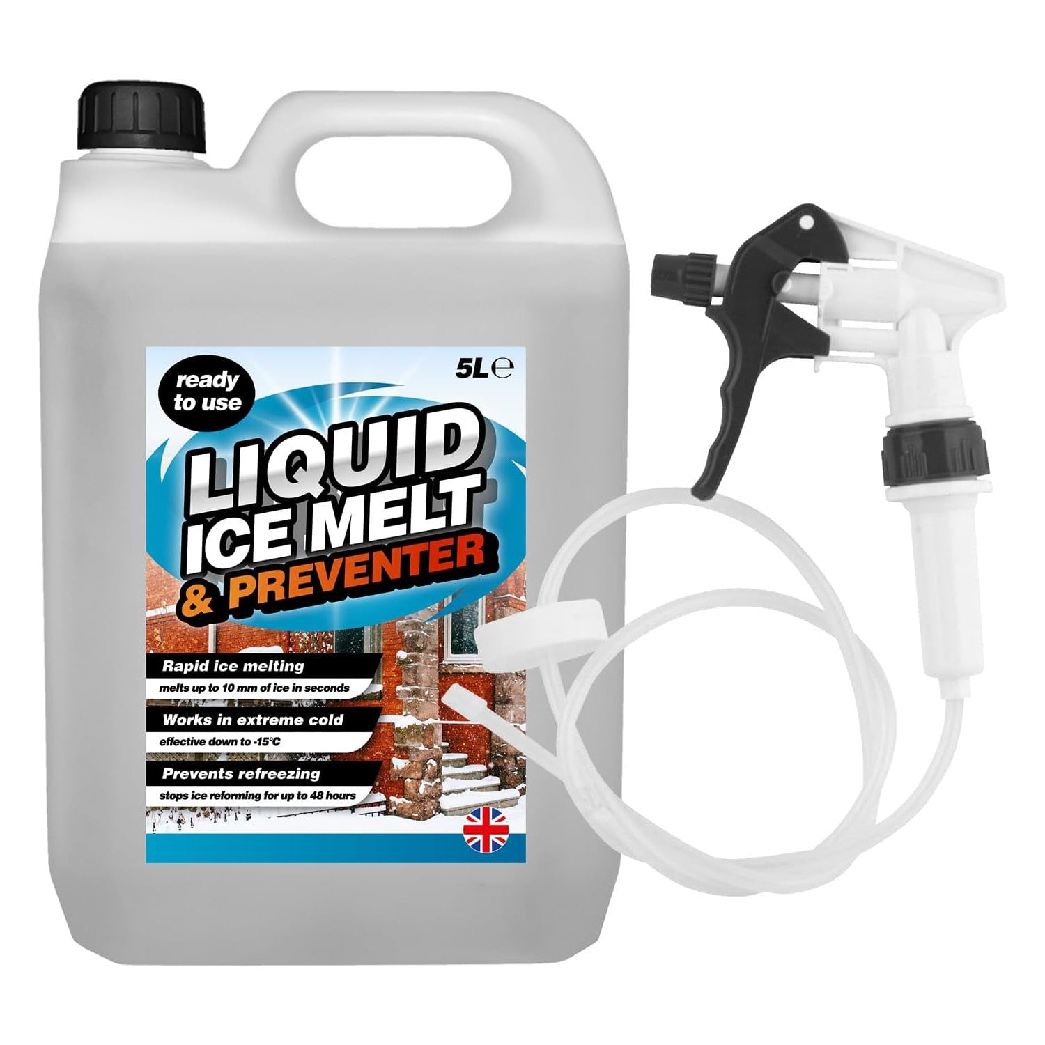 RAPID DE-ICER Liquid Ice Melt & Preventer is a professional-grade alternative to traditional rock salt and grit. This dual-action formula works as both de-icer and pre-icer, preventing ice from bonding to glass, metal and most surfaces whilst withstanding freezing conditions for up to 48 hours. Effective down to -15°C, it rapidly melts 10mm of ice and snow in just 25 seconds. Ideal for sensitive areas like gantries, fire escapes, mesh flooring and artificial grass where granular products cause damage. Non-corrosive to metals and concrete, this salt-free solution delivers reliable winter protection without the drawbacks of conventional de-icing methods. Supplied with convenient trigger hose applicator.