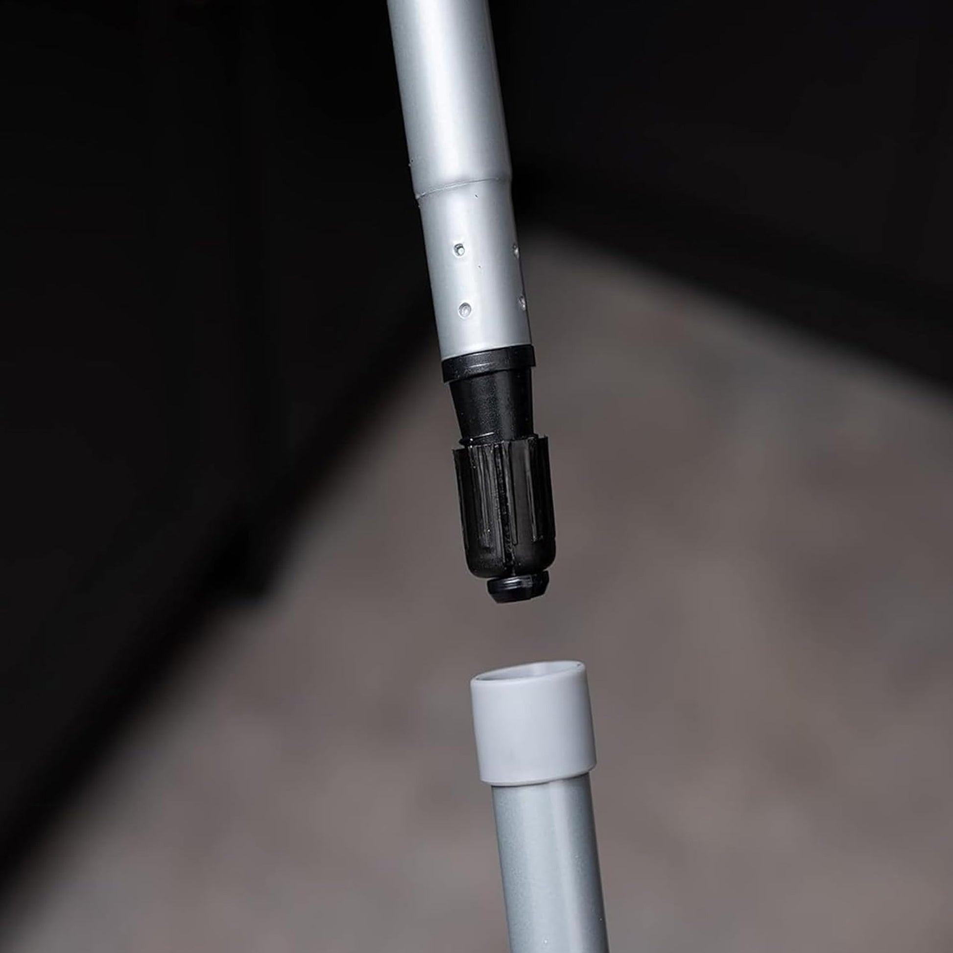 Simple push & turn the handle together and screw fit to the broom head assembly.