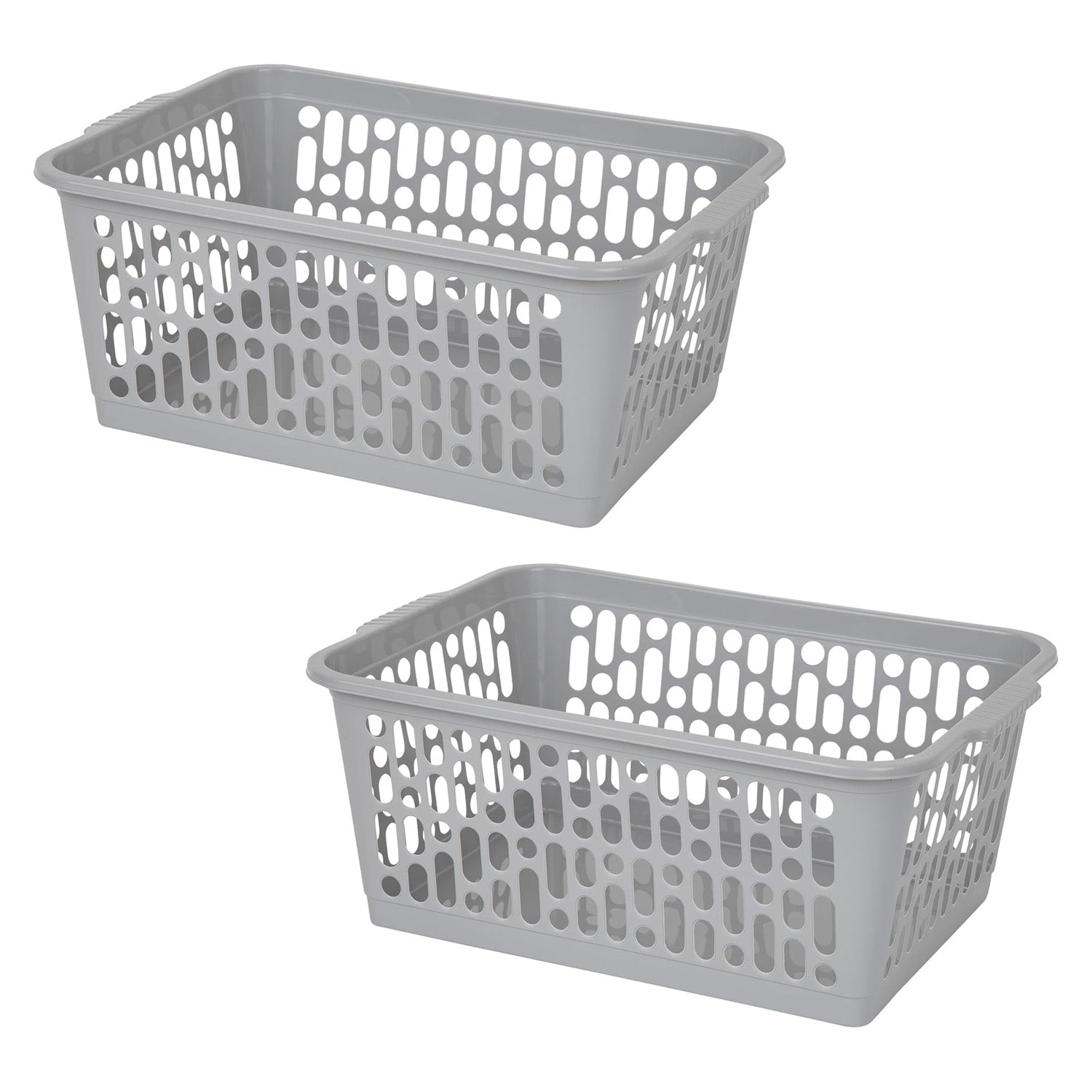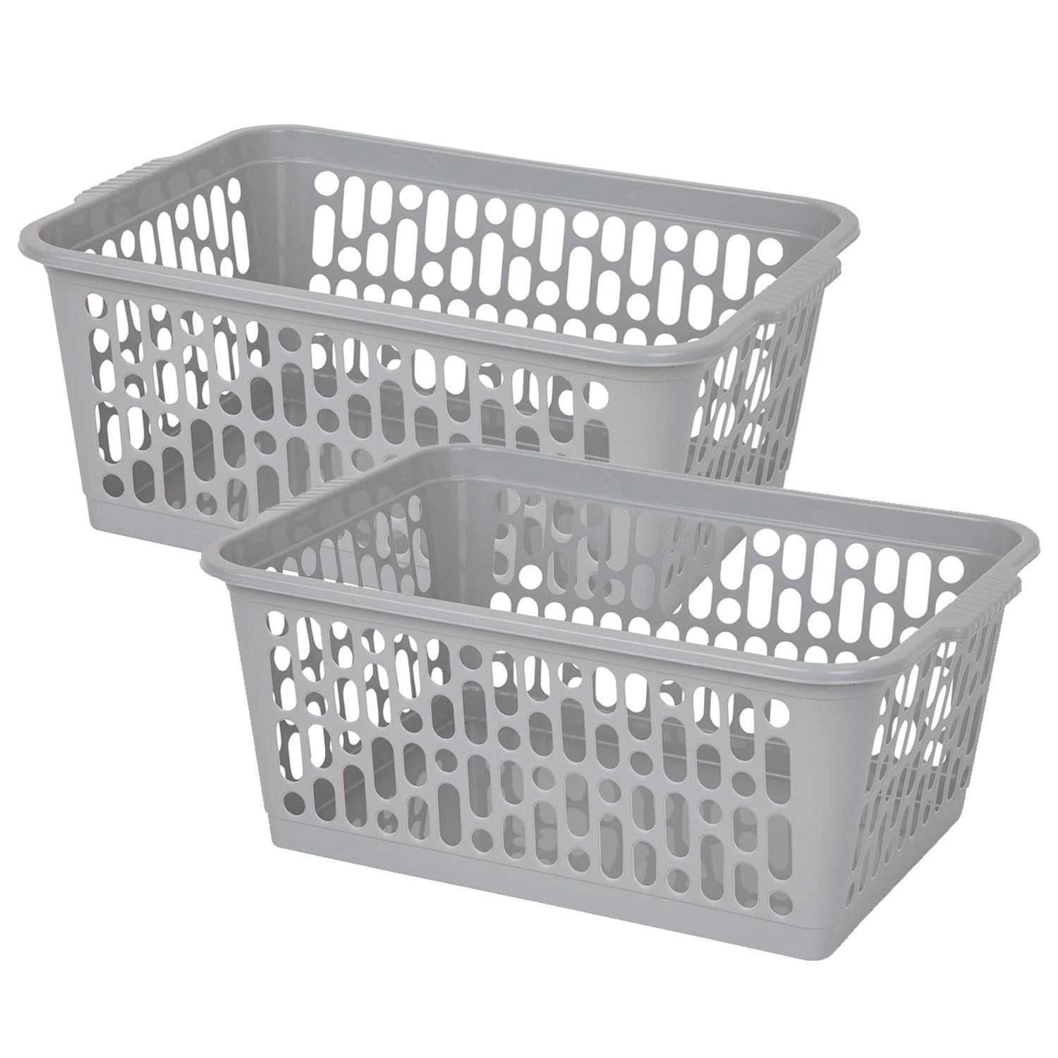 These large, cool grey plastic storage baskets offer a practical solution for organizing shelves, cupboards, and workspaces. Lightweight yet durable, they efficiently declutter areas in your bathroom, bedroom, or office, helping maintain a tidy environment. Their versatile design supports multiple storage needs while blending seamlessly with various interiors.