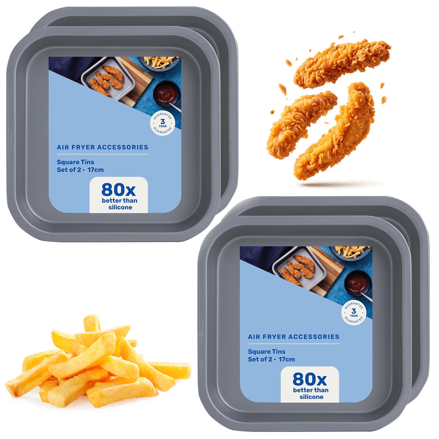 Our Non-Stick Carbon Steel Square 17cm Air Fryer Tin is engineered to maximize your air fryer’s versatility while promoting healthier cooking with up to 99% less oil. Its lightweight carbon steel construction allows for rapid heat transfer and effortless handling, ideal for roasting, baking, and air frying. Compatible with most leading UK air fryers, this 17cm square tin simplifies meal preparation and clean up—it’s dishwasher safe and easy to wipe down. Rated for use up to 230°C, it offers durable performance for creating delicious homemade dishes.