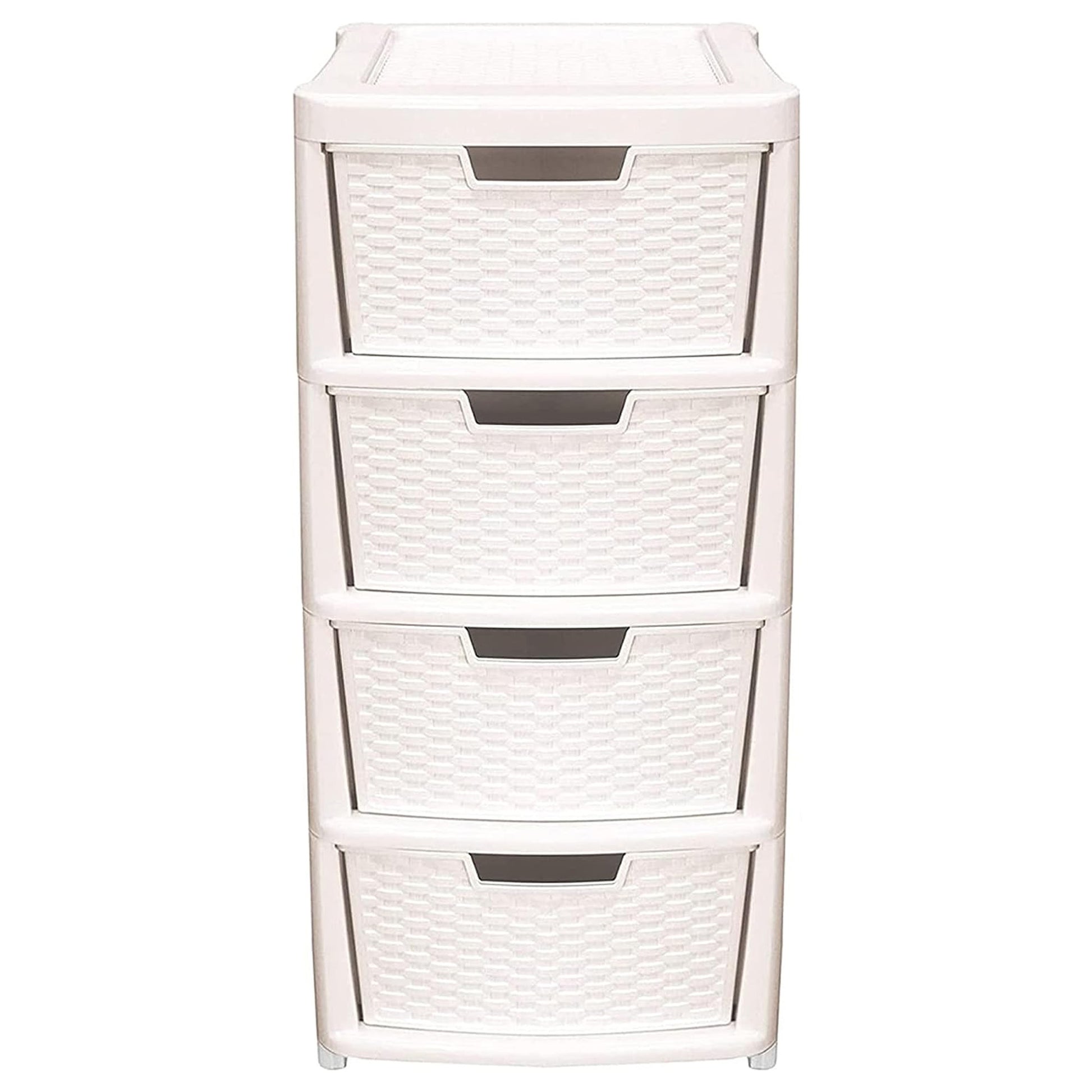 Large stylish cream or pink rattan drawers complete with four spacious drawers. Perfect for all kinds of rooms from living rooms, bedrooms, bathrooms & even working environments. The drawers are completely modular so they can be taken out rearranged & remodelled keeping all your items well organised & in order at all times. Ideal for storing a range of items from toys, shoes, clothes, beddings & paper work. Multipurpose drawers easy to clean maintain & manoeuvre.